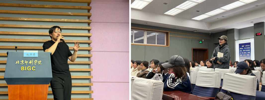 讲座最后,同学们围绕AI数字人的形象设计、IP的差异化打造、相关领域的职业发展机会等话题积极提问。赵汗青结合自身项目经验,一一给予了细致解答。他鼓励同学们主动拥抱新技术,将AI作为延伸个人创意能力的“伙伴”,在掌握专业基础的同时,积极拓展视野,在实践中探索属于自己的创作路径。