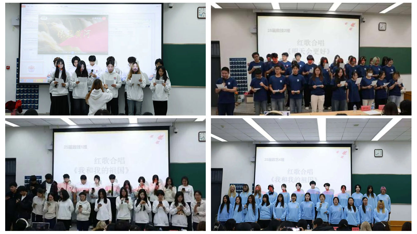 2025级全体班级参加此次比赛,各班级在前期精心选曲、认真组织排练,带来了《我和我的祖国》《黄河大合唱》《今天是你的生日》《没有共产党就没有新中国》《北京欢迎你》《唱支山歌给党听》等脍炙人口的经典歌曲,同学们深情高歌,歌声中满是对祖国深深的热爱与自豪,红旗飘扬与激昂旋律交融,激荡人心。