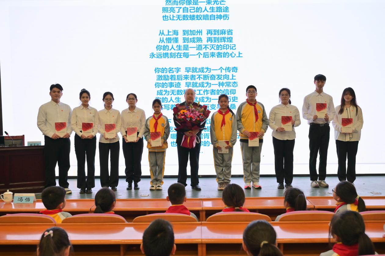 钱永刚为现场学生代表签名、赠送书籍《听馆长讲钱学森的故事》,激励广大青少年向老一辈科学家学习以天下兴亡为己任的历史责任感,为国家强盛、民族复兴贡献自己的力量。