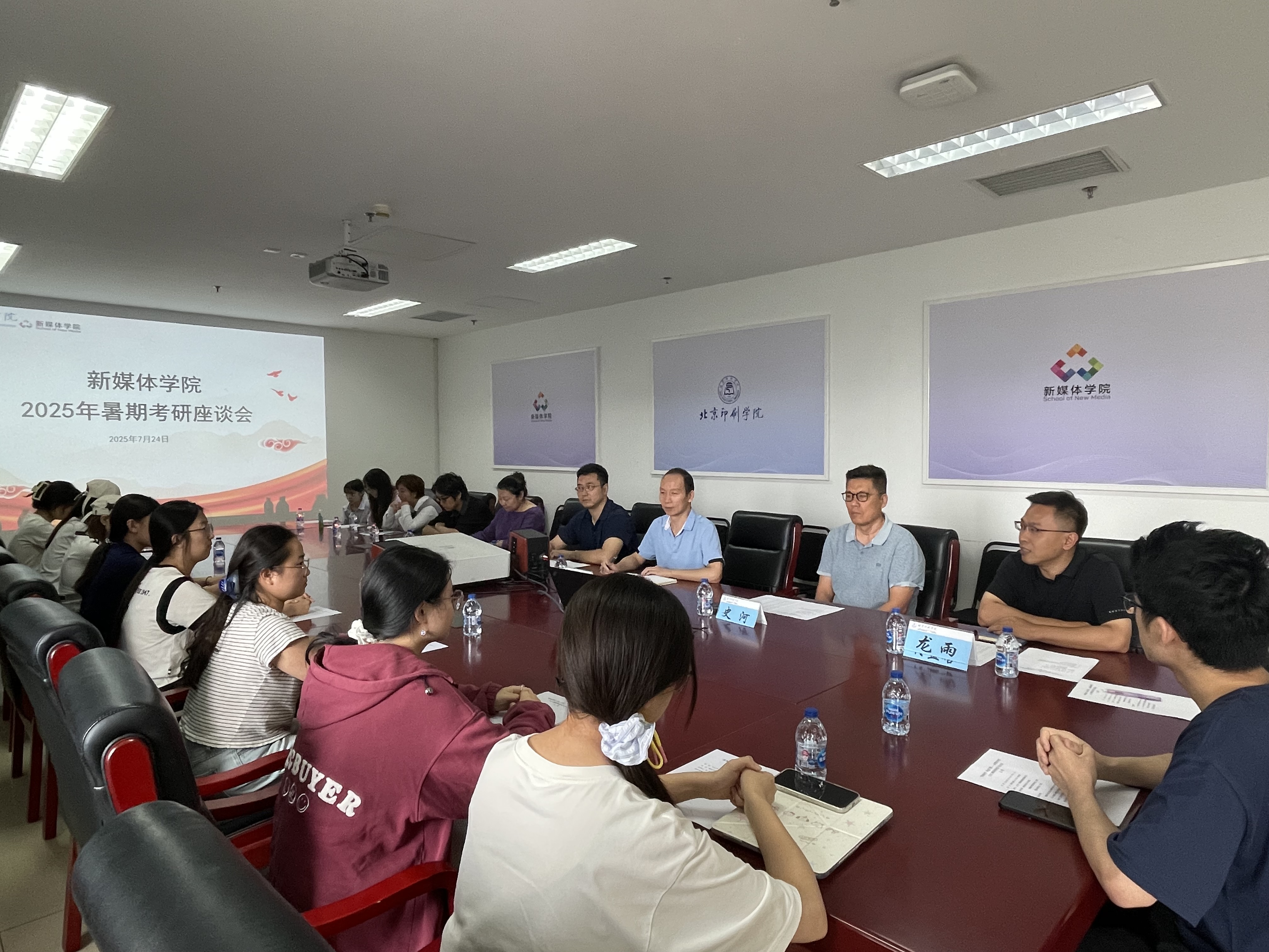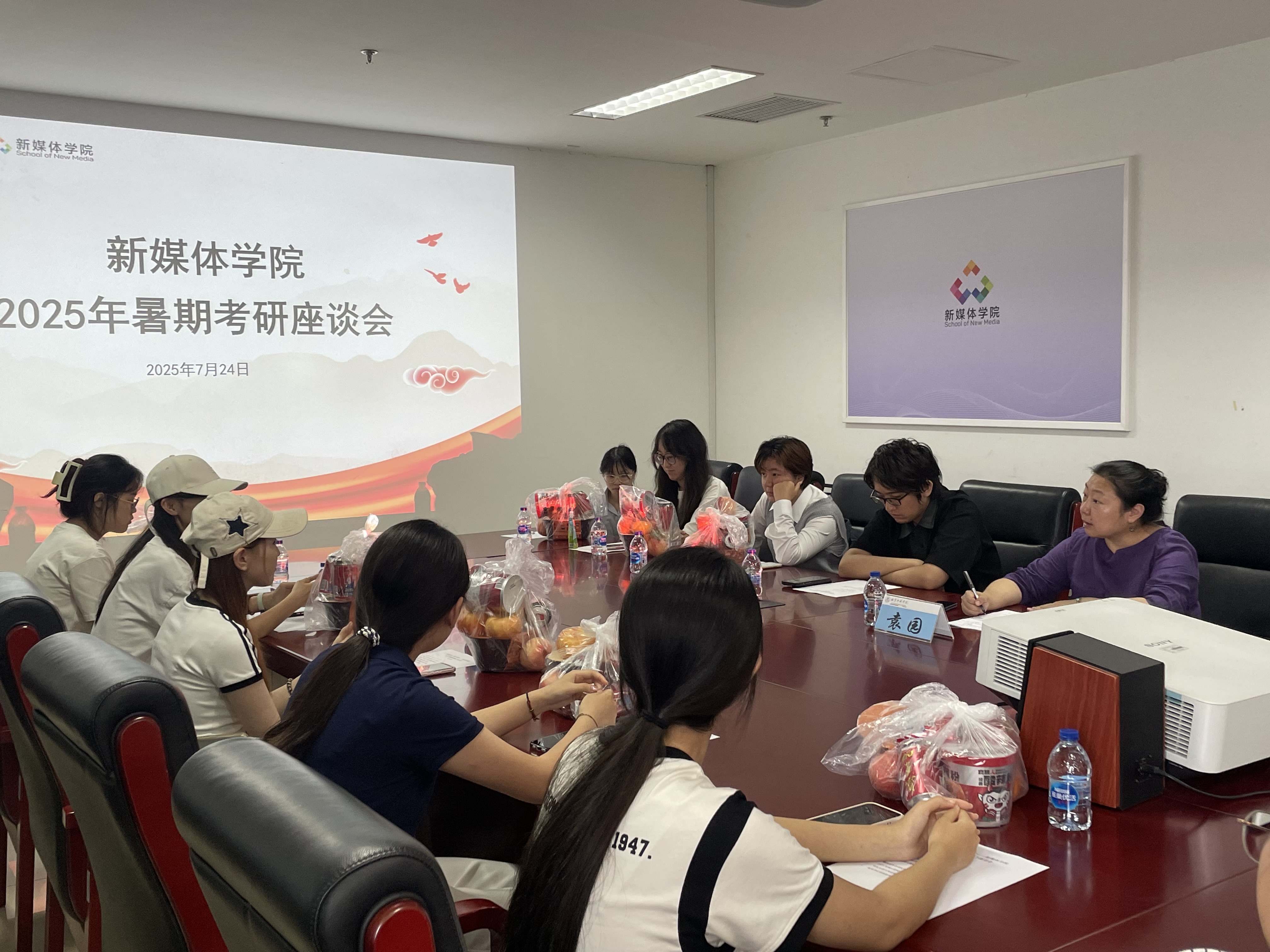 为深入了解暑期备考学生的学习生活状况,切实助力暑期留校备战考研的学生明确复习方向、优化备考策略、坚定备考信心。7月24日下午,新媒体学院在学院会议室召开“青梅相伴 研途可期”2025年暑期考研留校学生座谈会。教务处处长孙志成、新媒体学院党委书记赵欣、教务处副处长史河、新媒体学院副院长袁园、新媒体学院辅导员佟孟晗以及15名留校学生代表参加会议。会议由新媒体学院党委副书记龙雨主持。